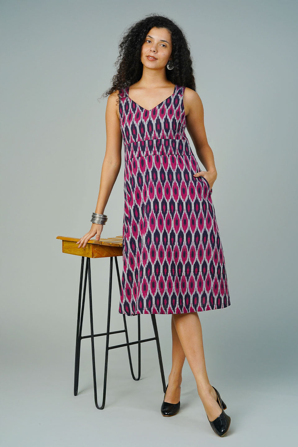 Blue Blockprint Midi Dress