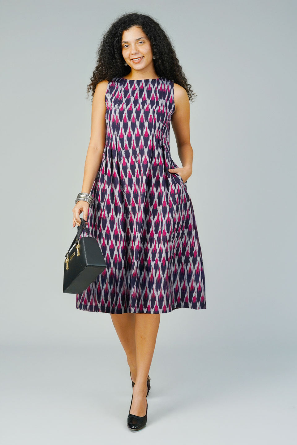 Blue Ikat Midi Dress