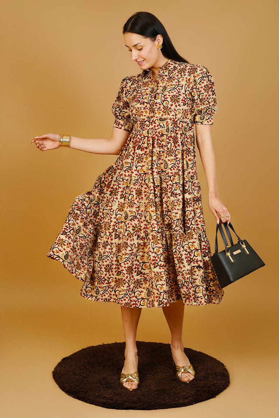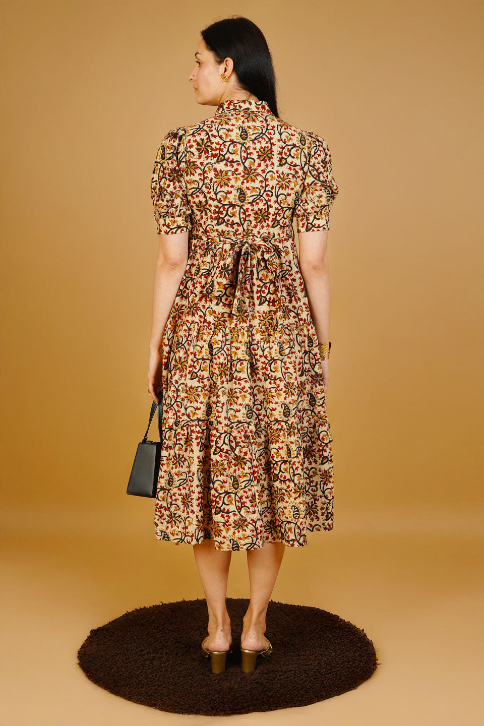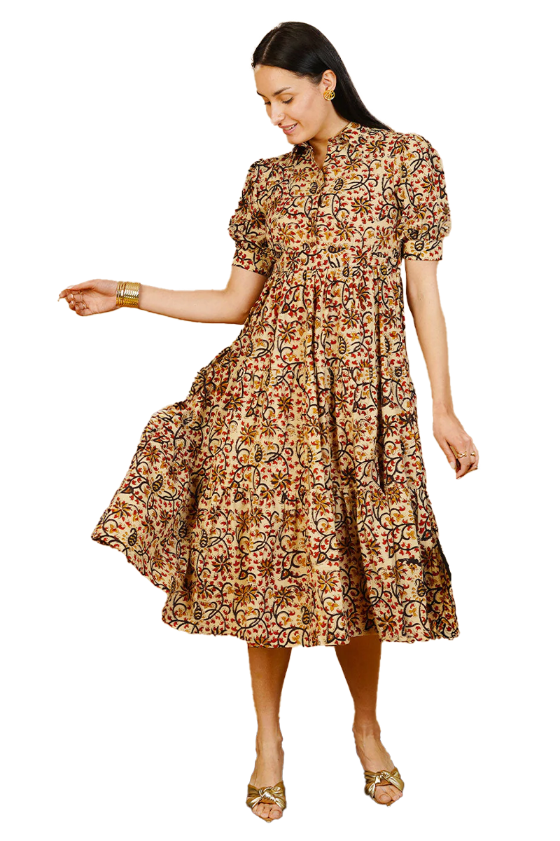 Brown Bagru Cotton Midi Dress