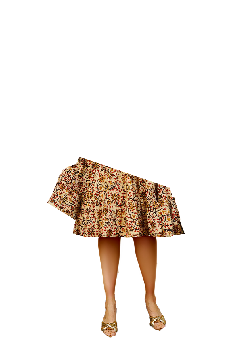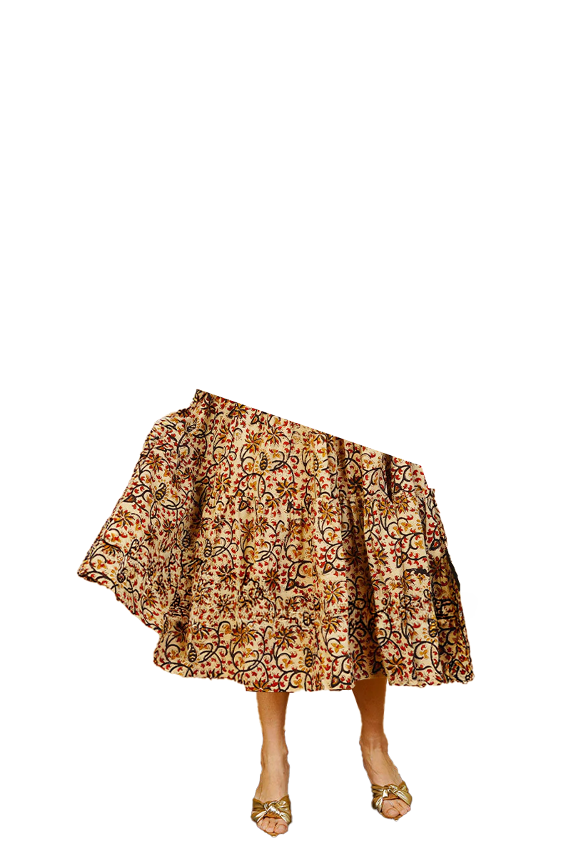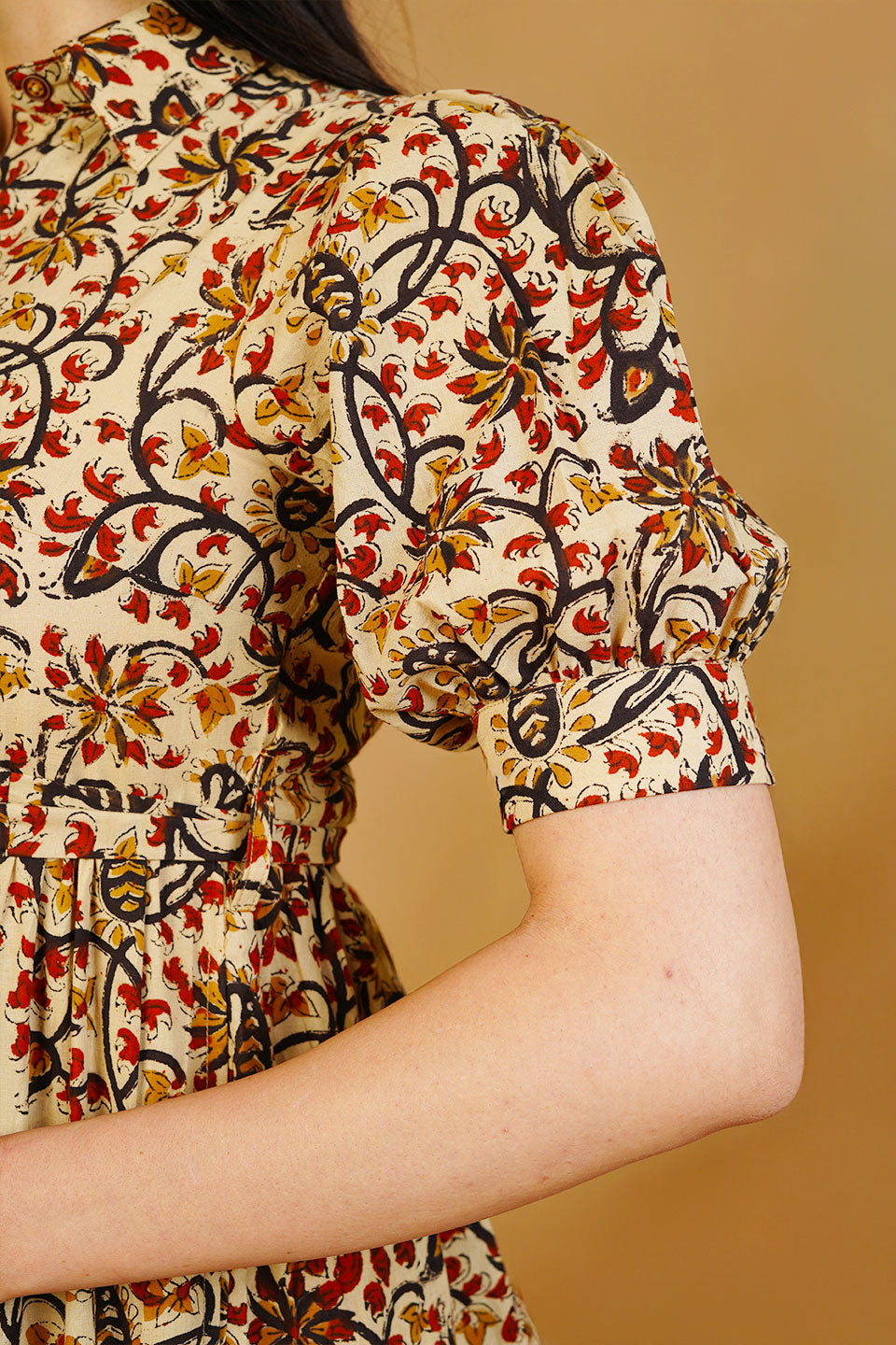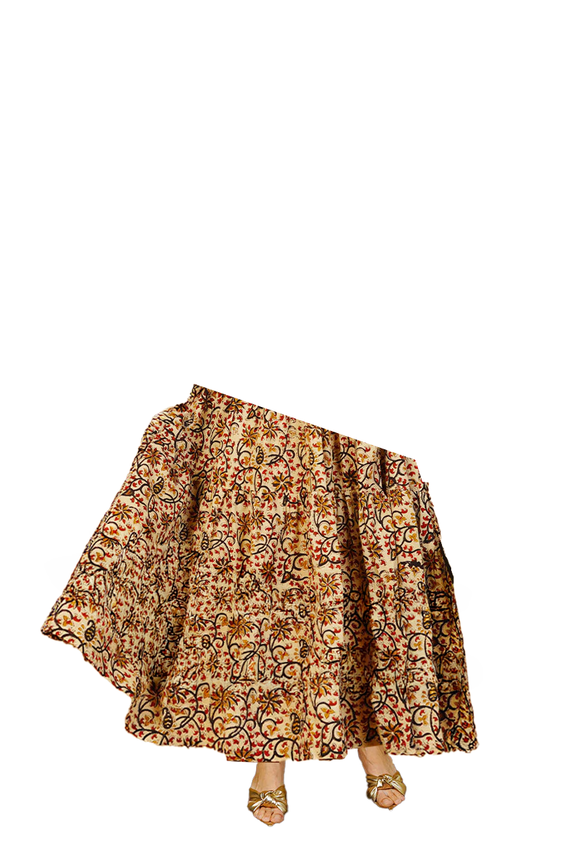 Brown Bagru Cotton Midi Dress