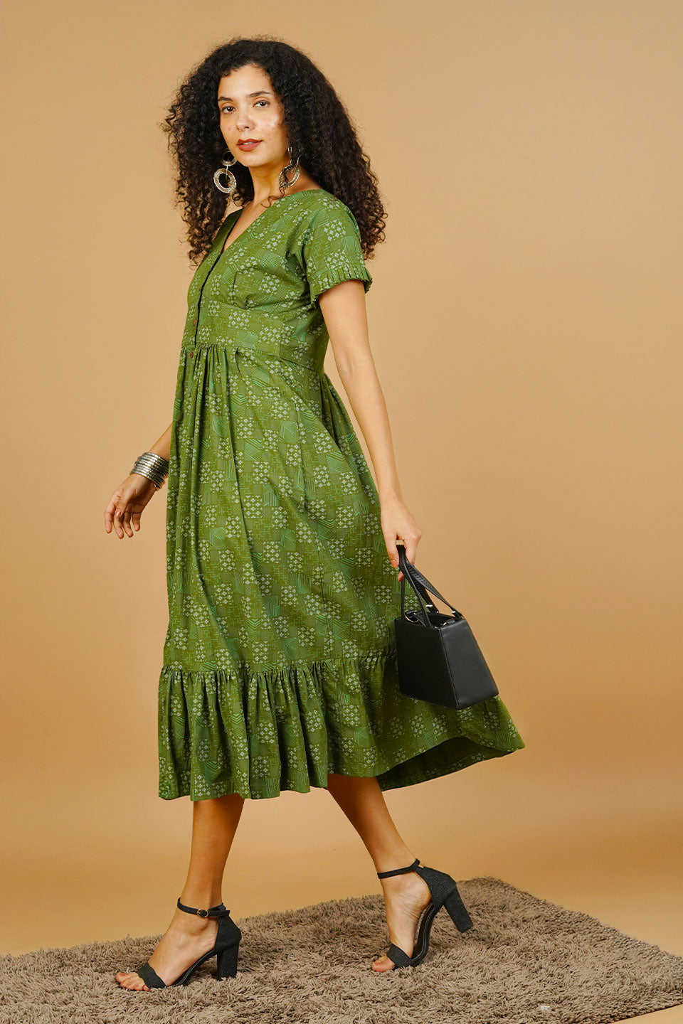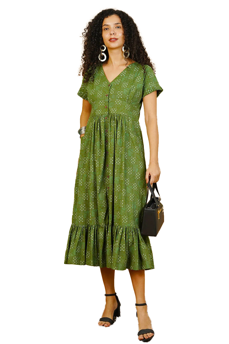 Green Premium Cotton Cotton Dress