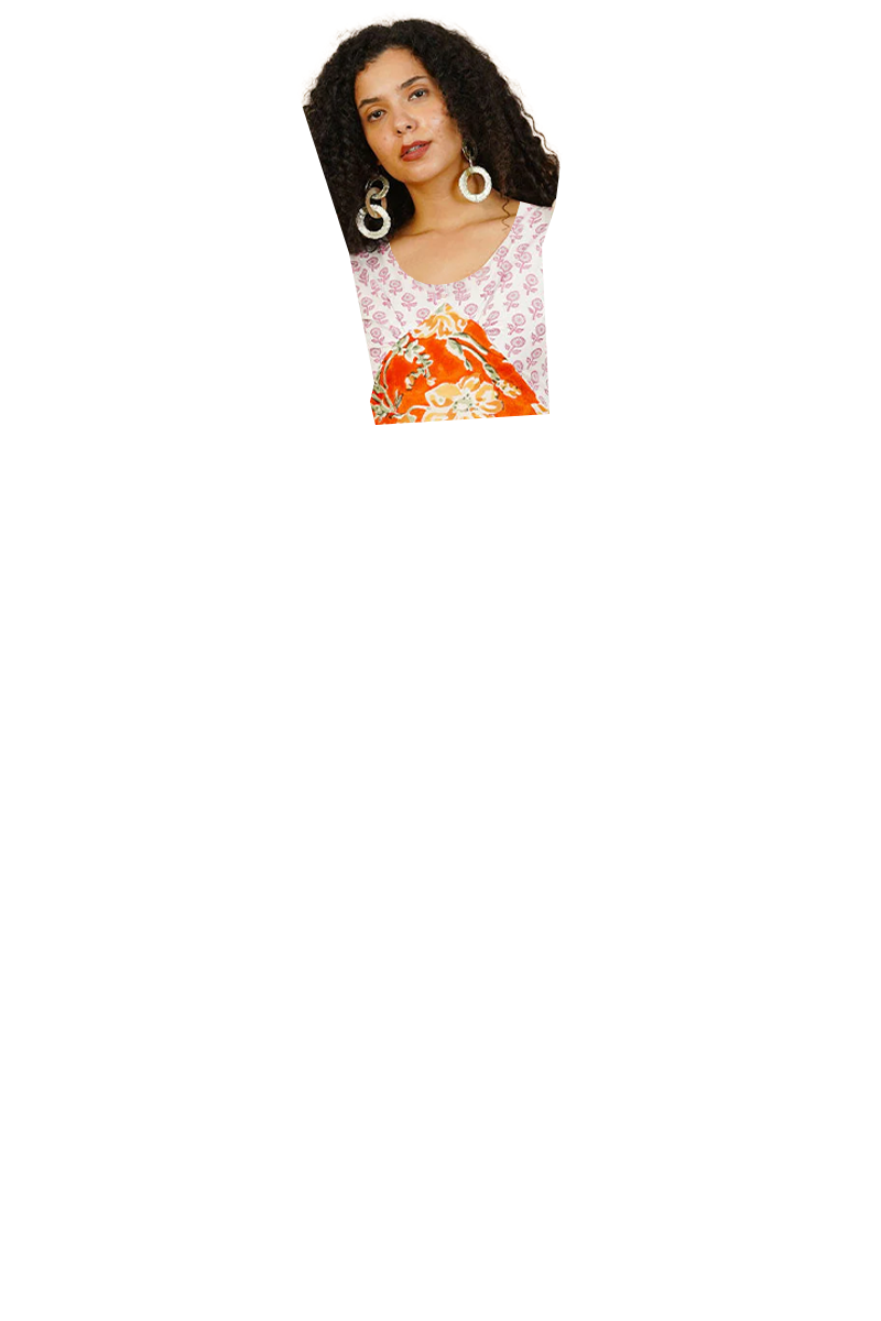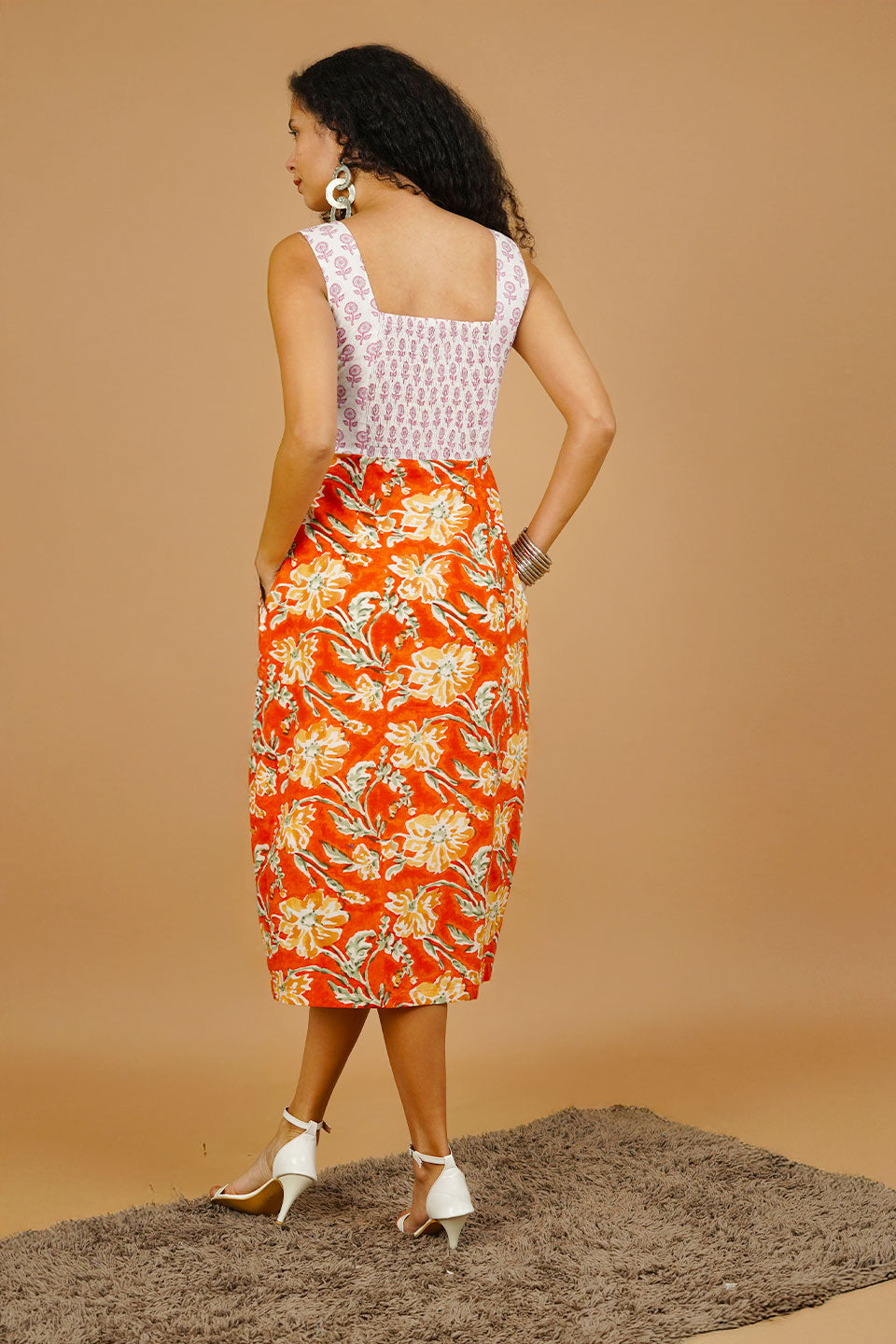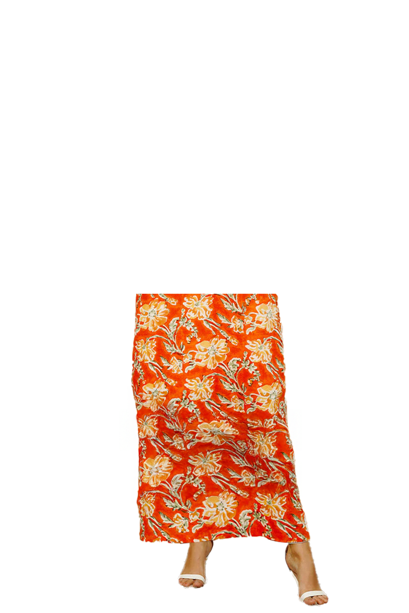 Orange Bagru Cotton Dress