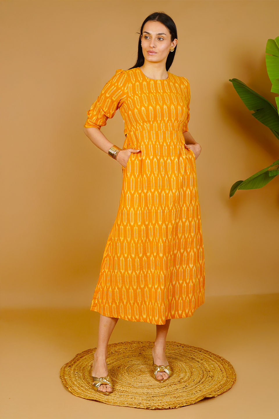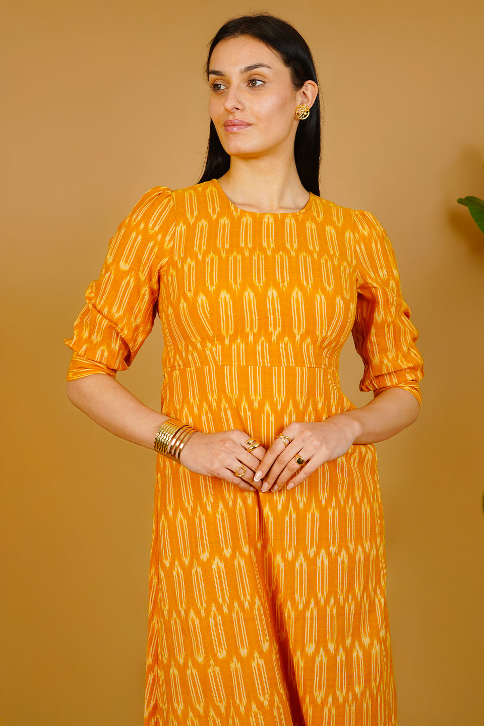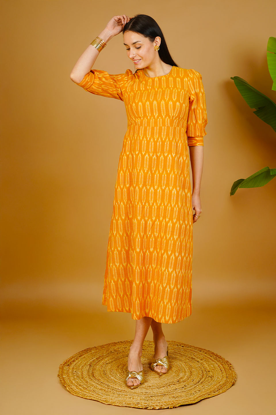 Orange Ikat Cotton Maxi Dress