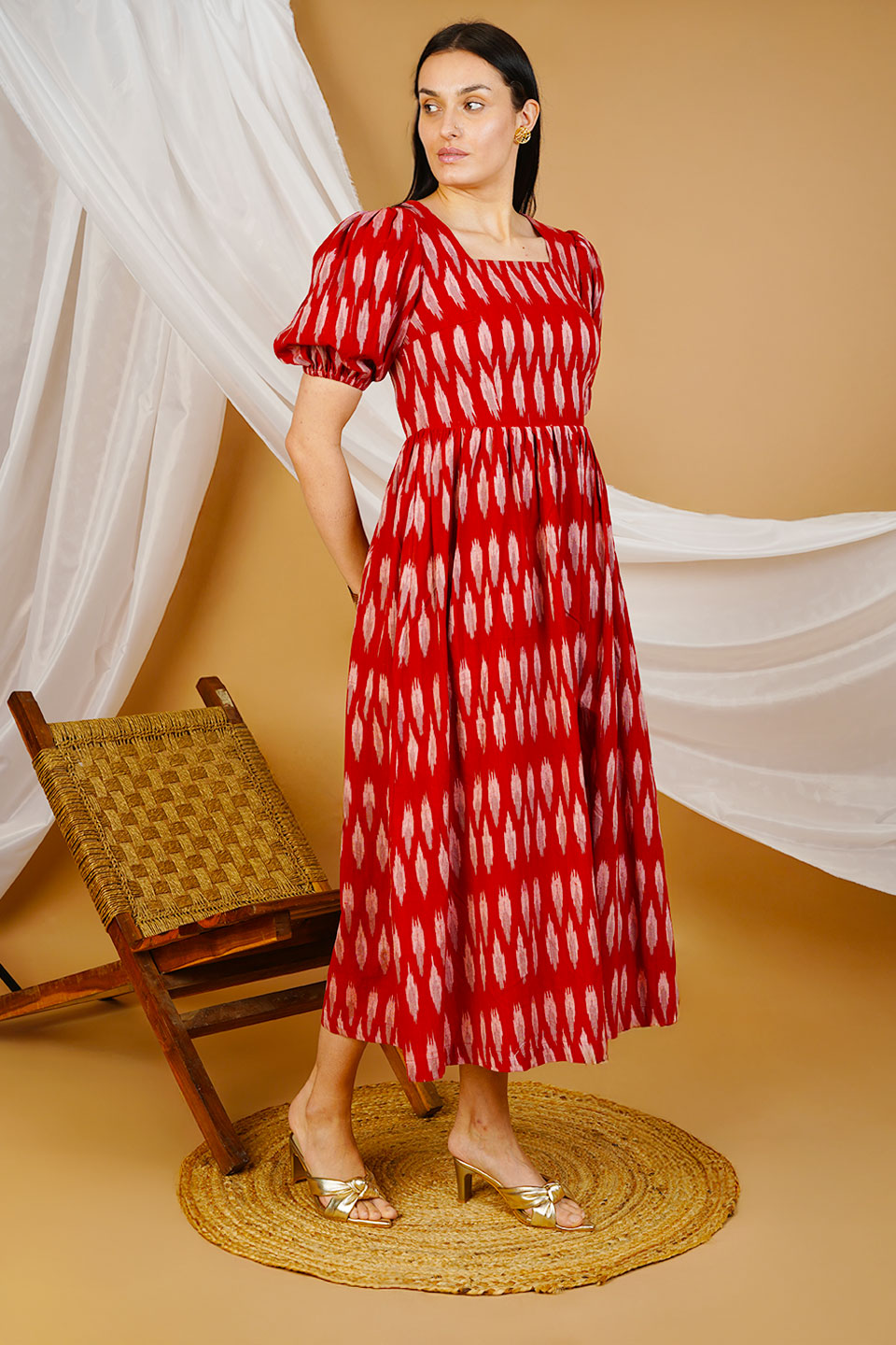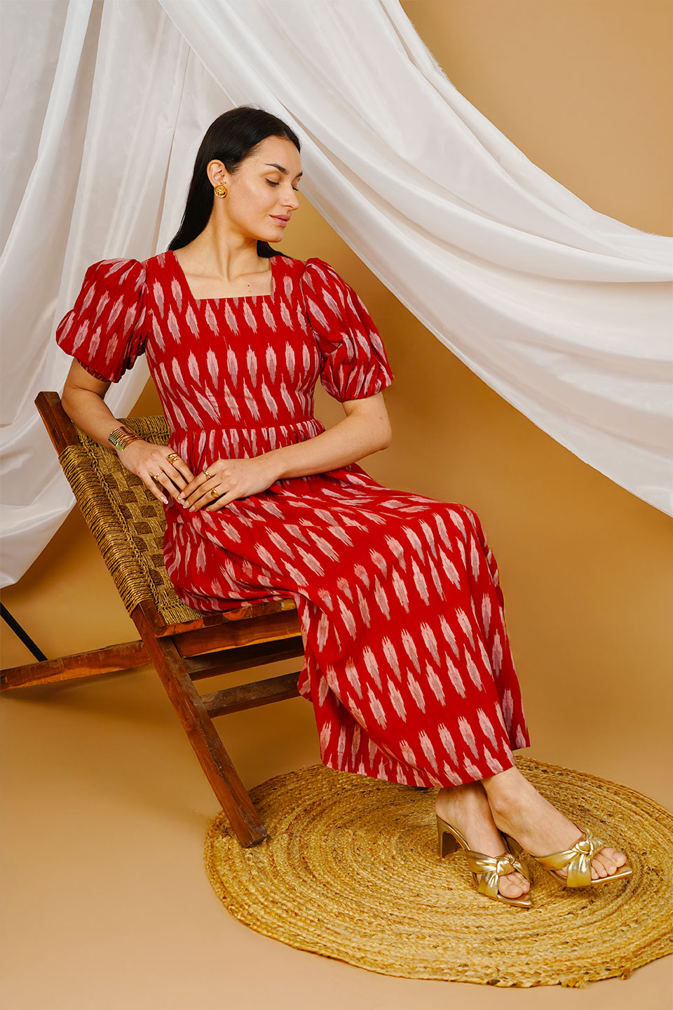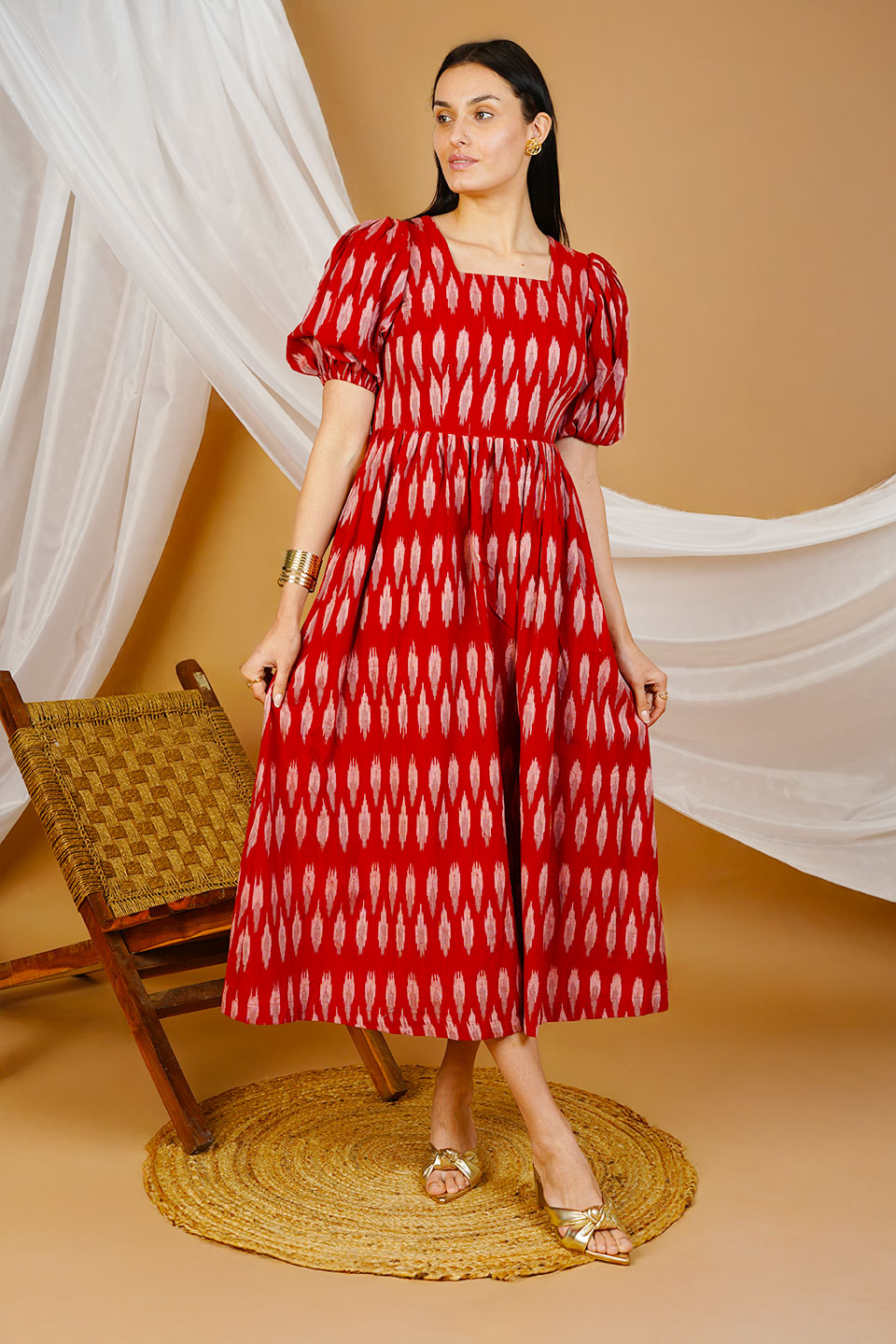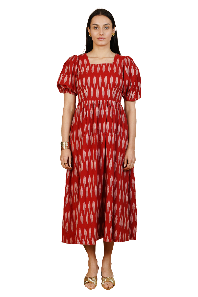 Red Ikat Cotton Maxi Dress