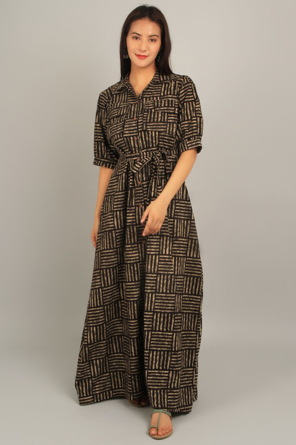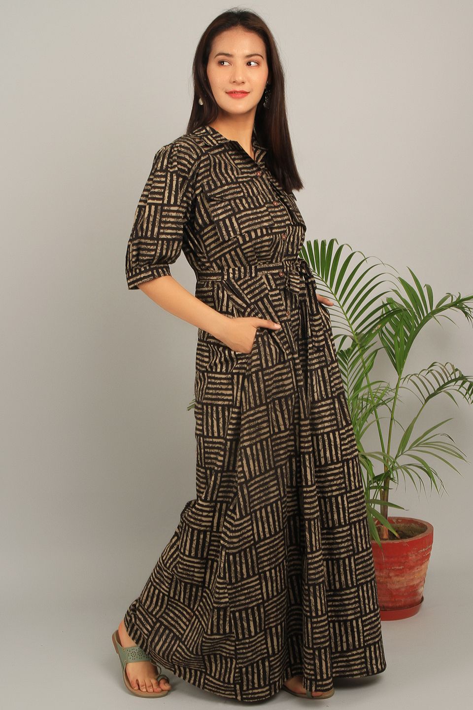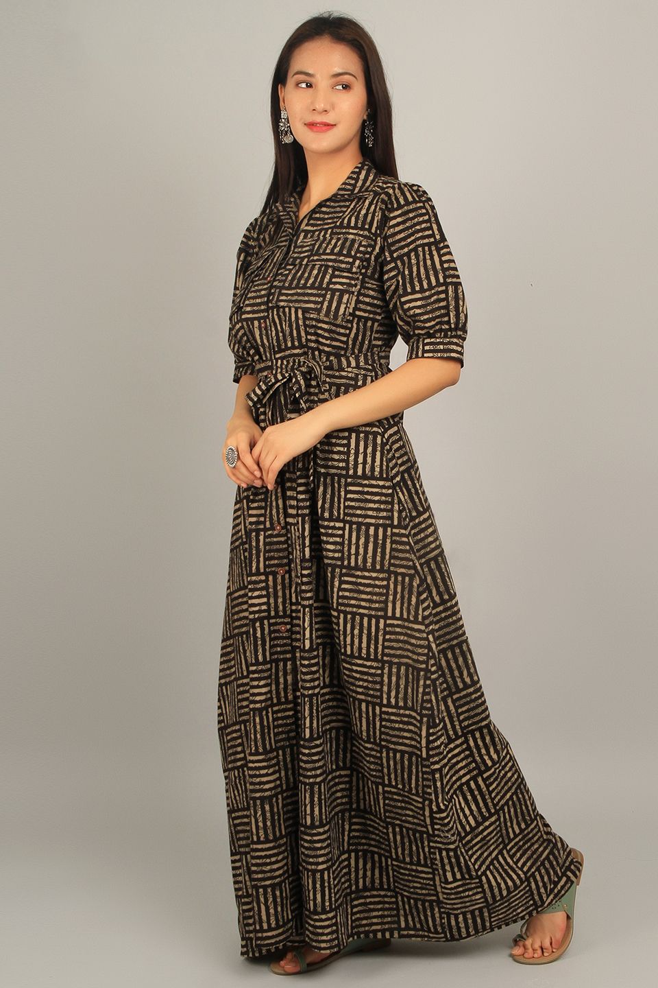 Bagru Brown Cotton Maxi Dress
