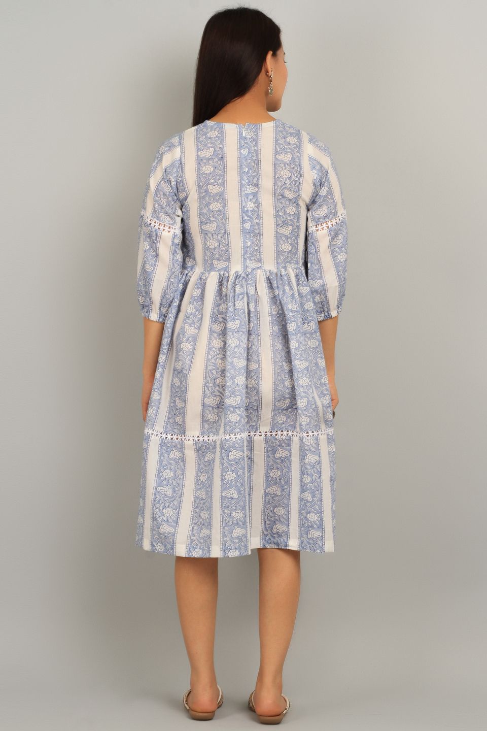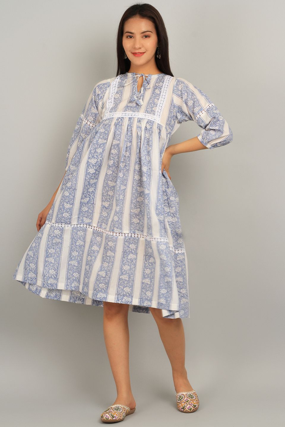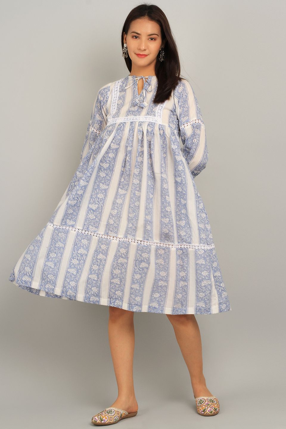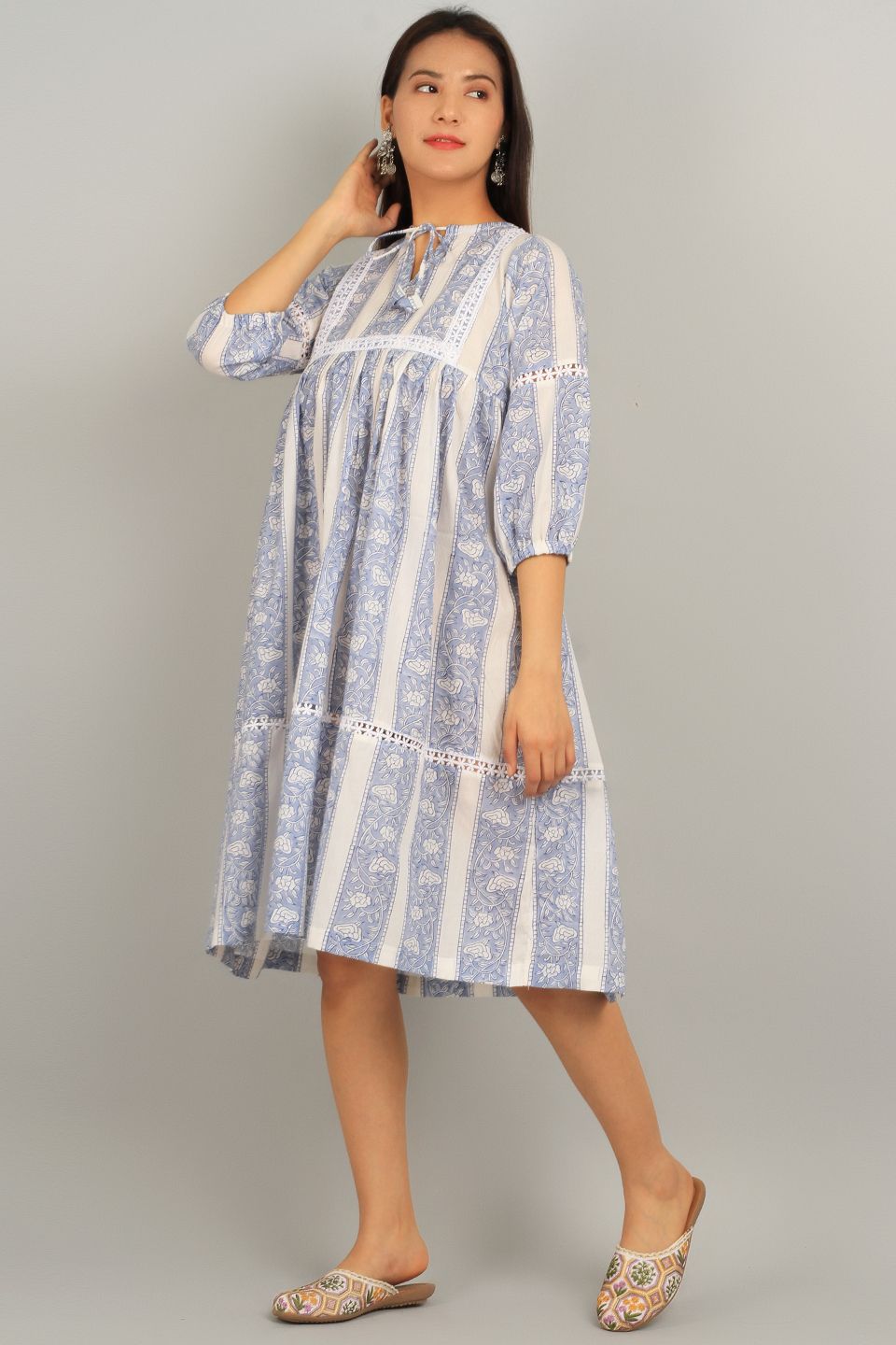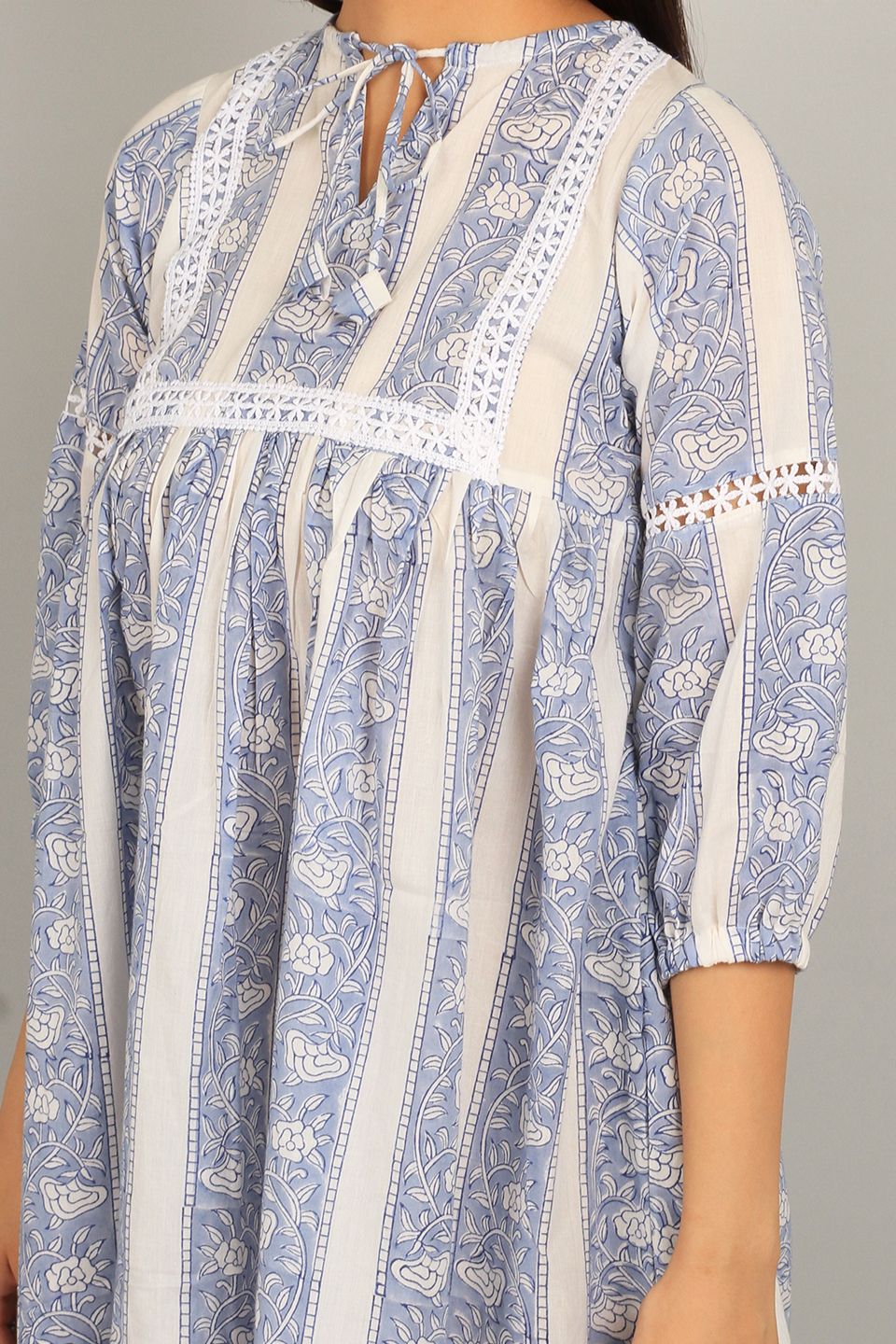 Bagru White Cotton Mini Dress