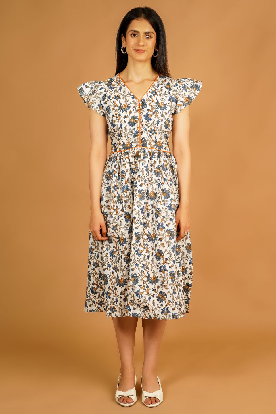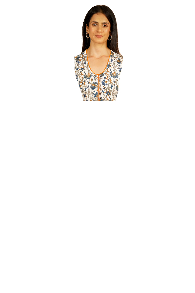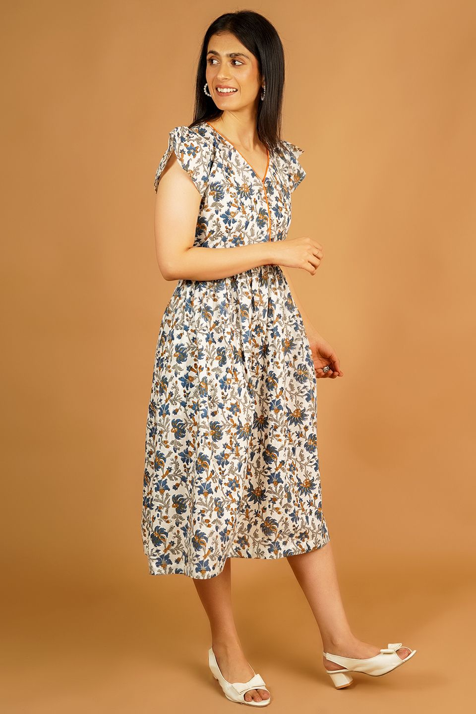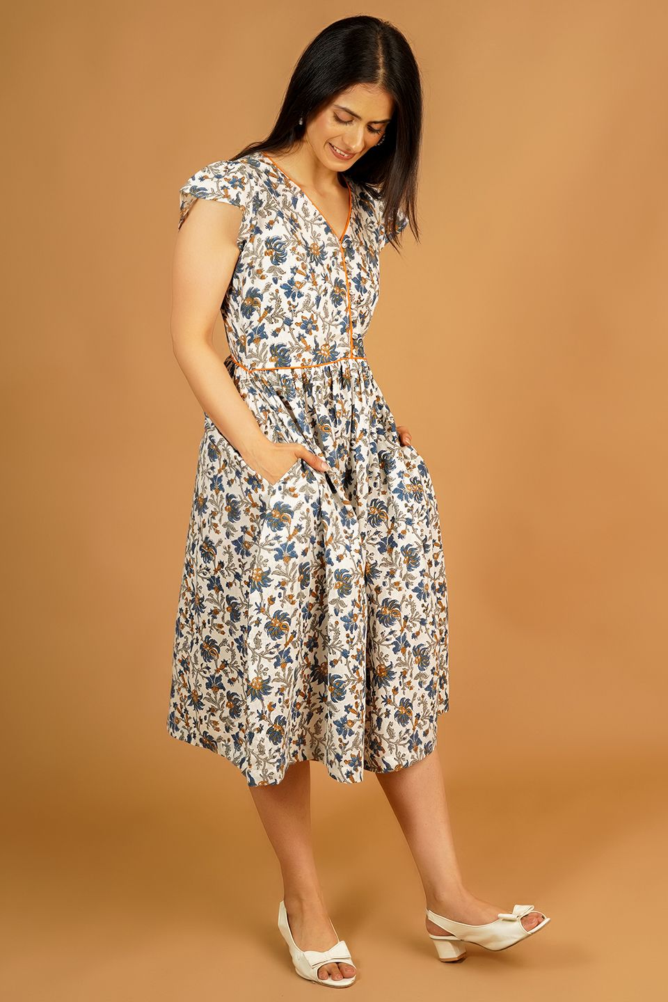 Bagru White Midi Dress