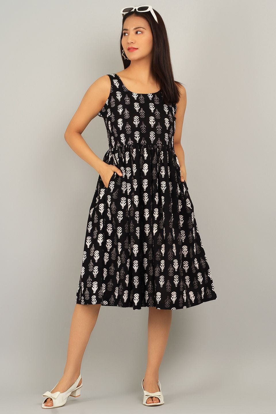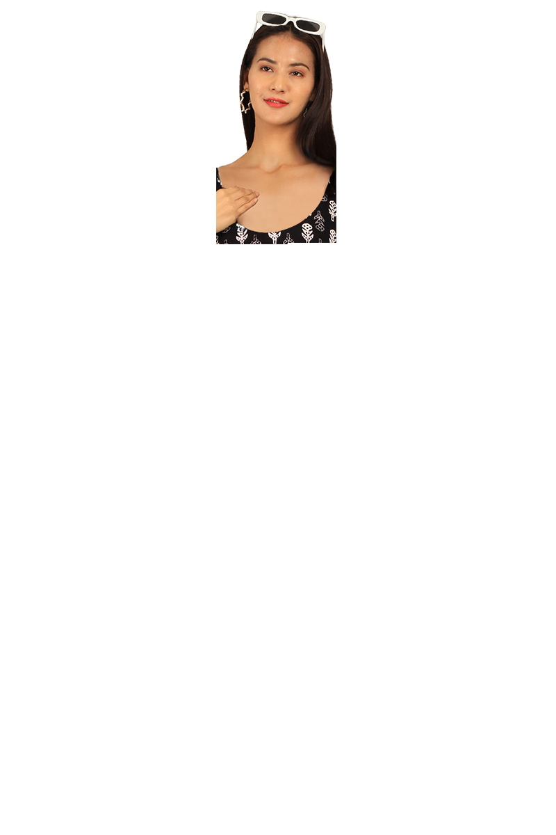 Indigo Black Cotton Midi Dress