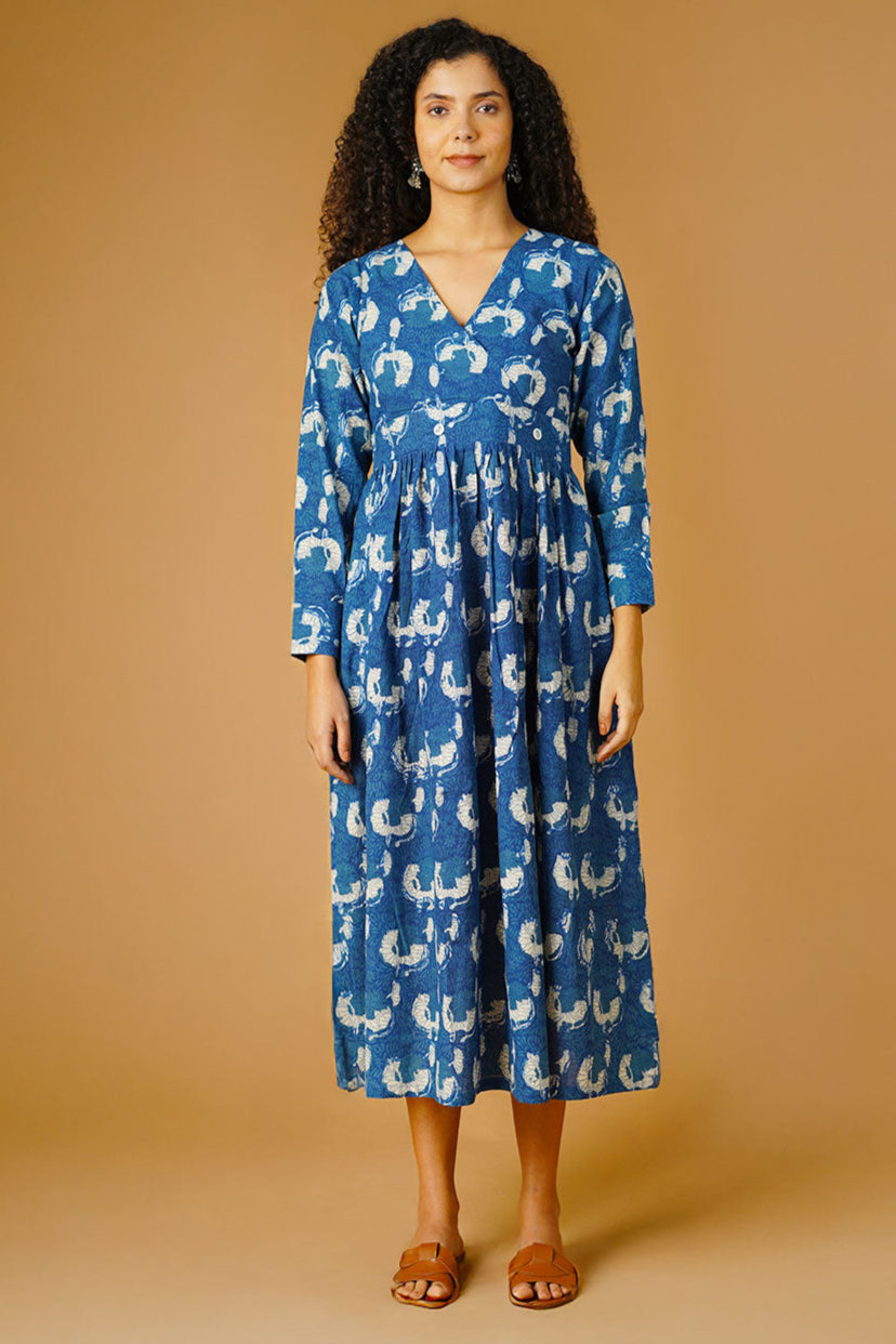 Indigo Cotton Blue Midi Dress
