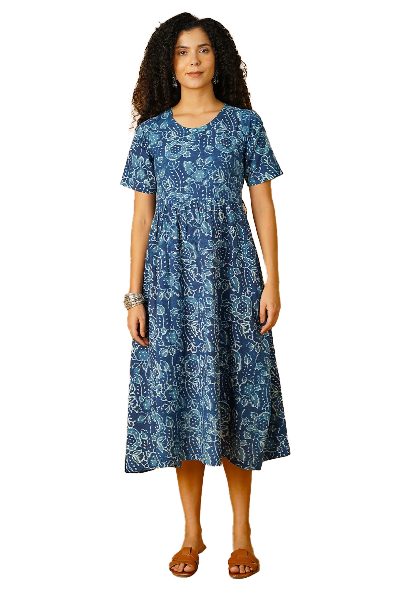 Indigo Cotton Blue Midi Dress