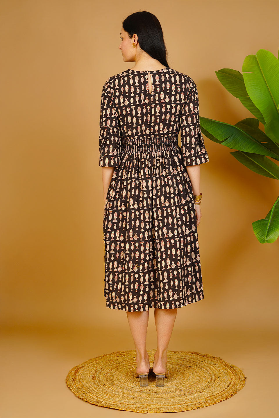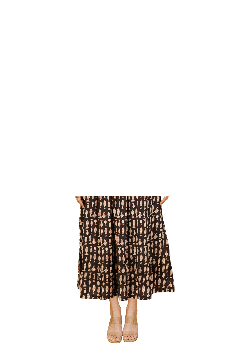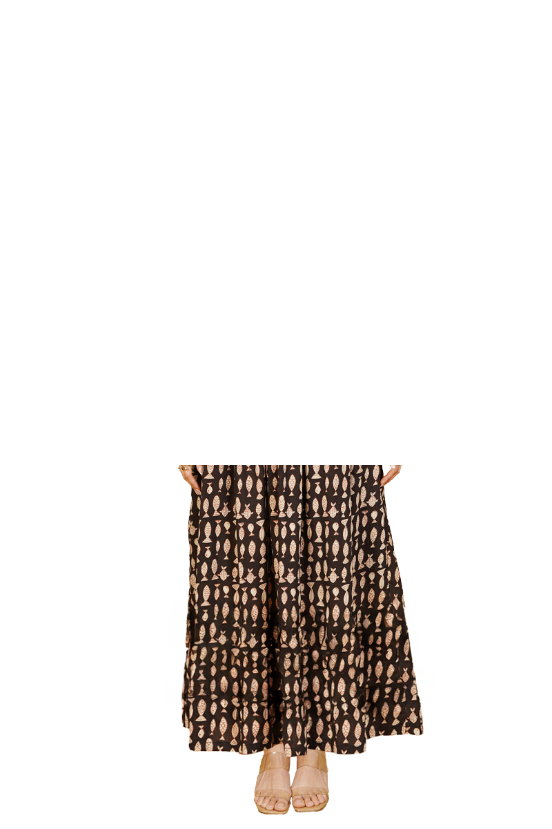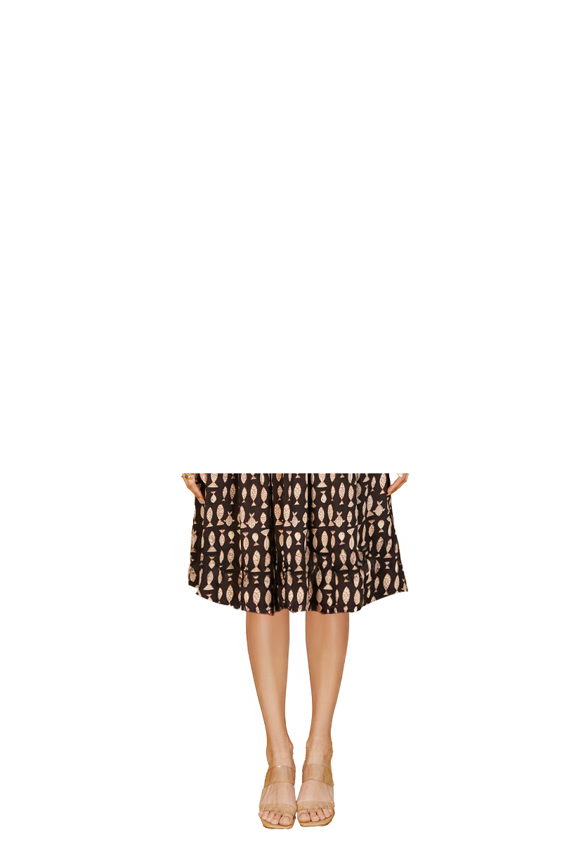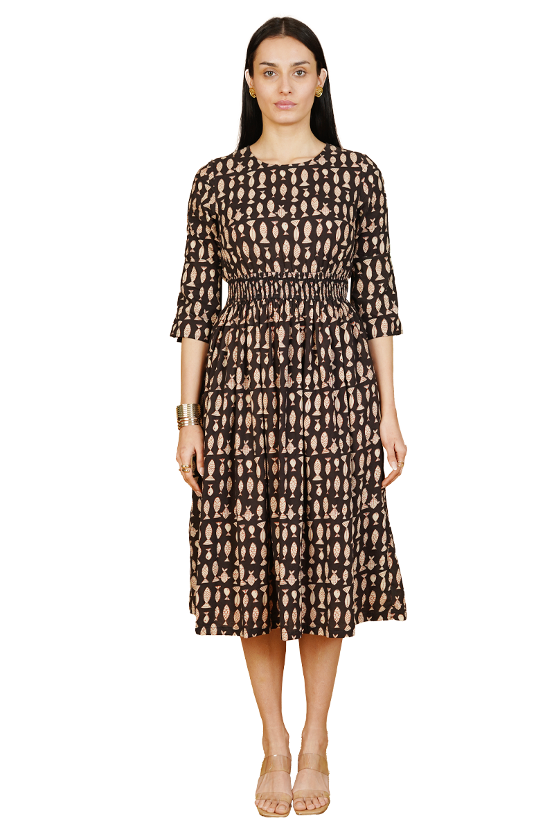 Black Bagru Cotton Midi Dress