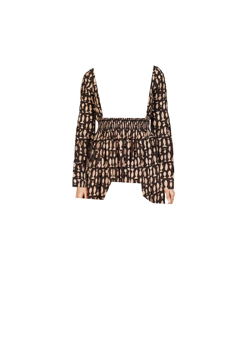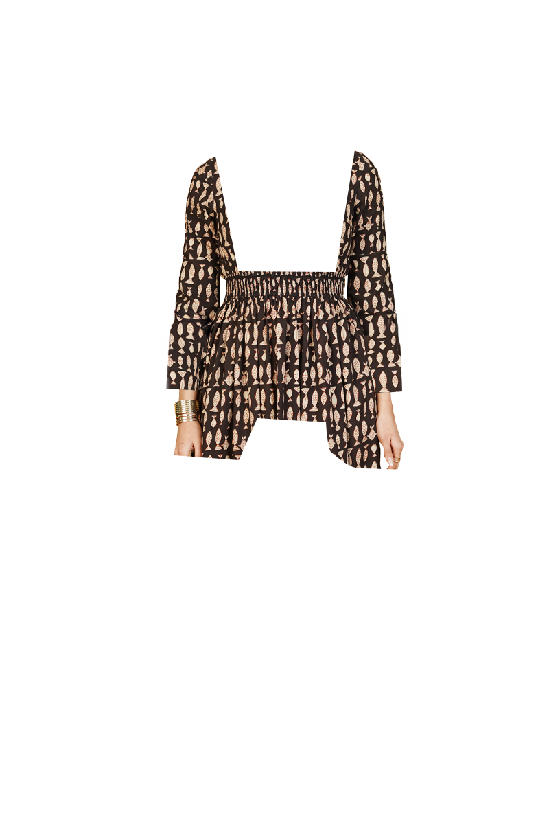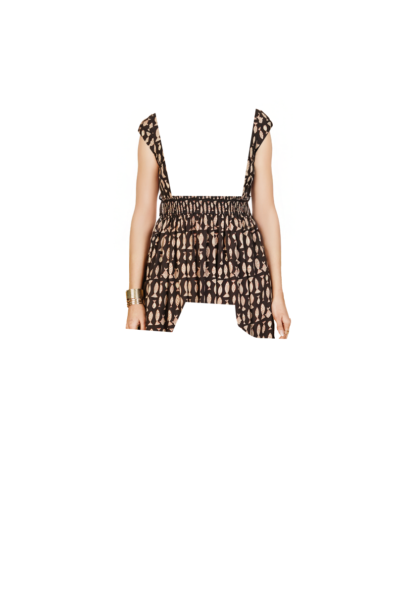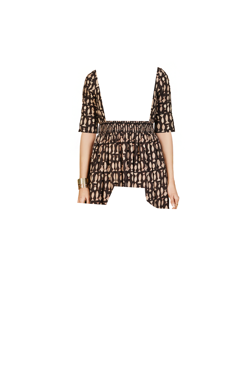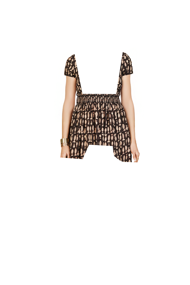 Black Bagru Cotton Midi Dress