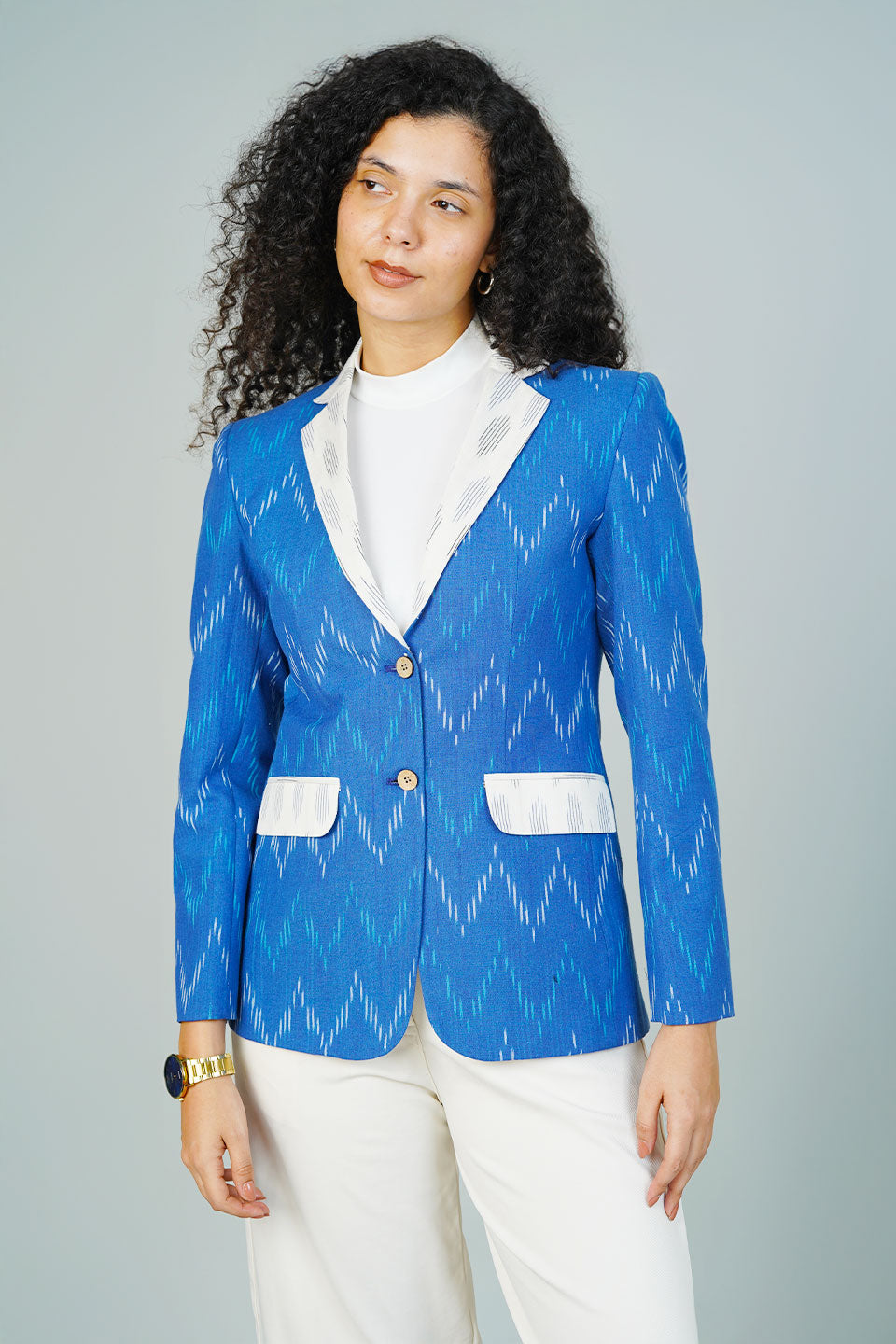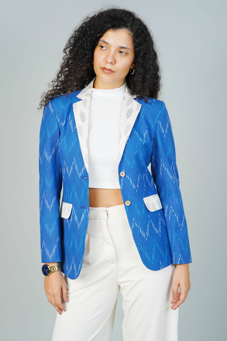 Blue Ikat Cotton Blazer