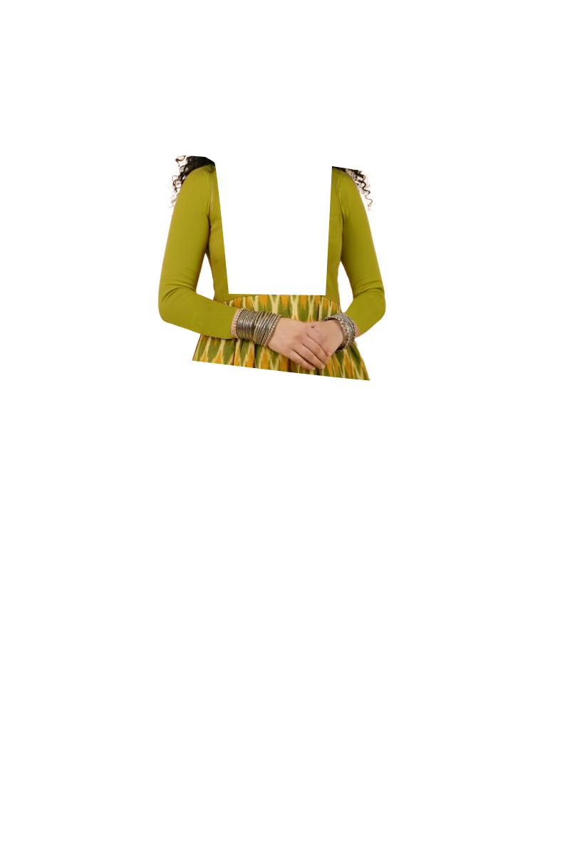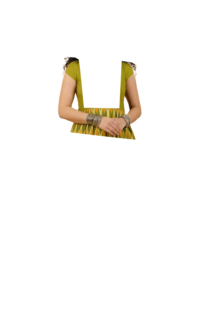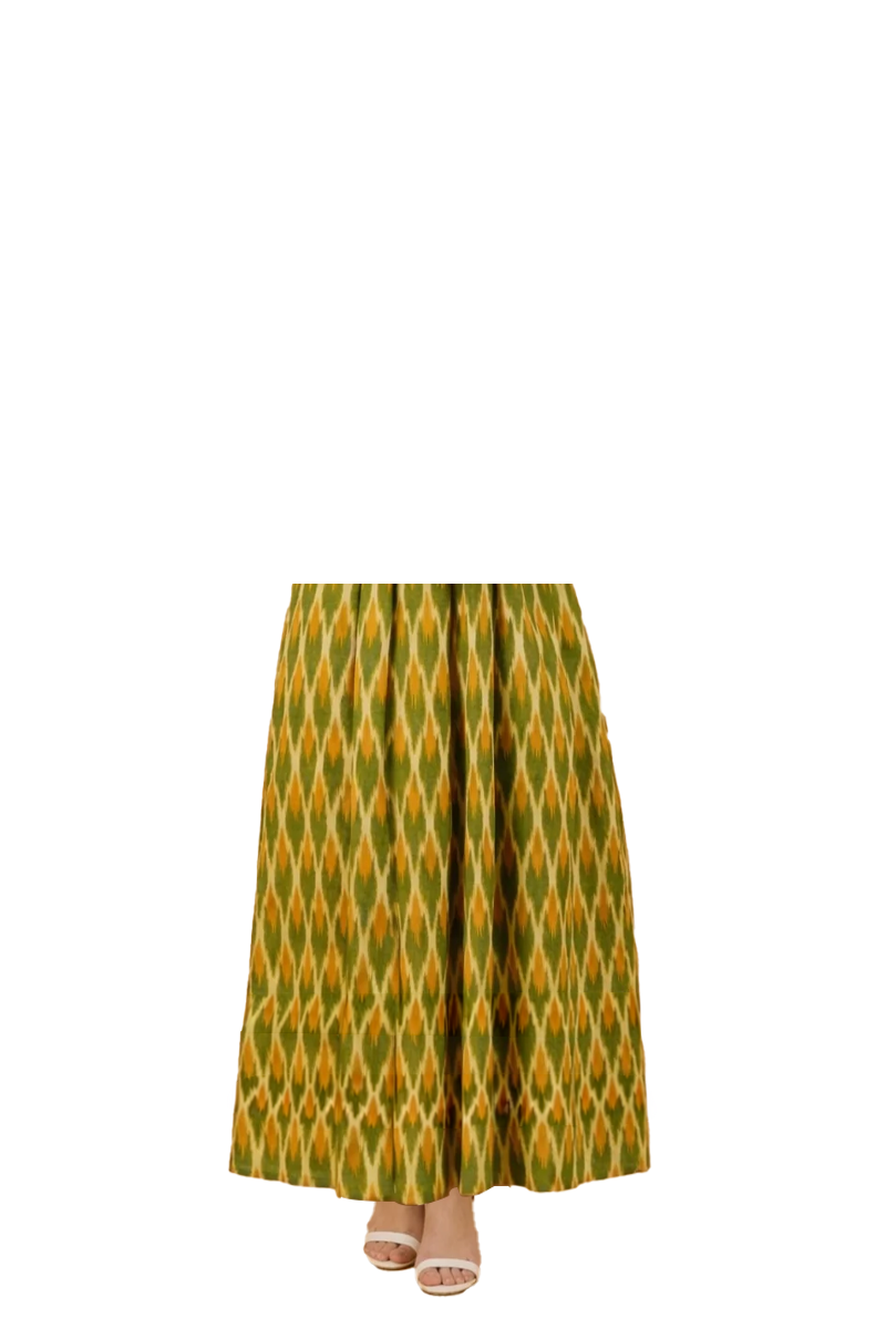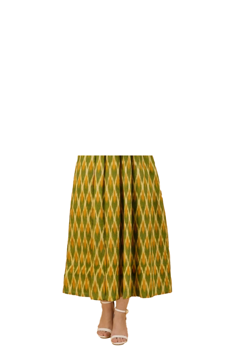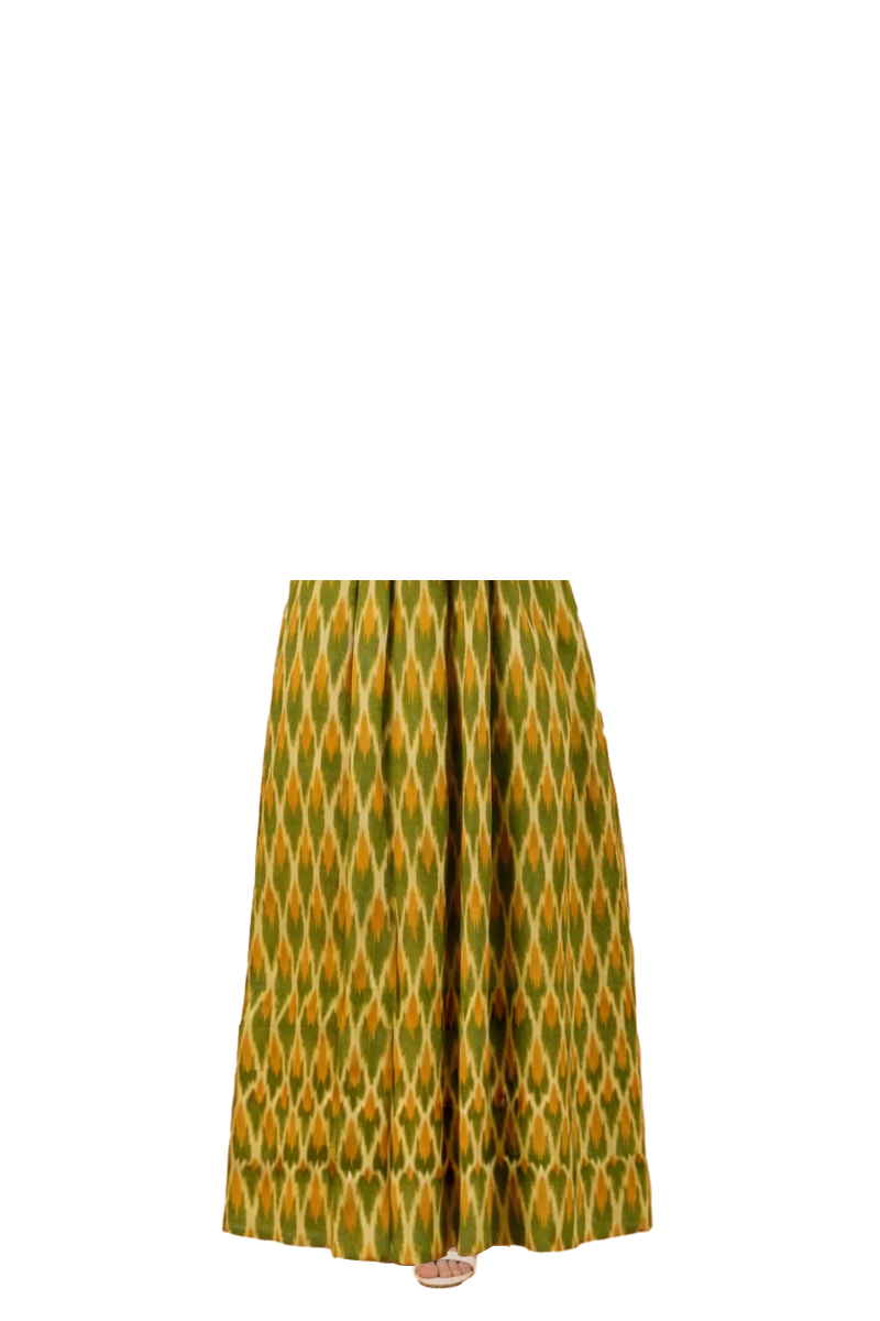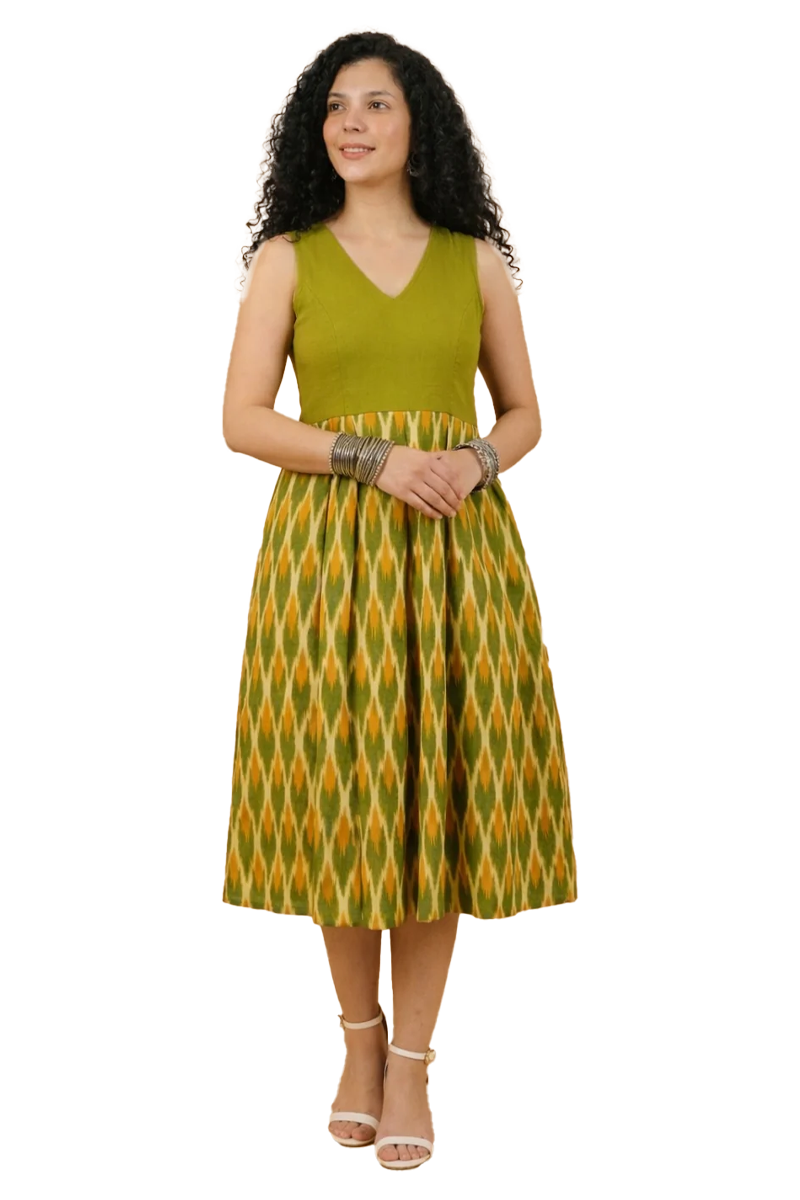 Green Ikat Midi Dress with Cotton Jersey Bodice
