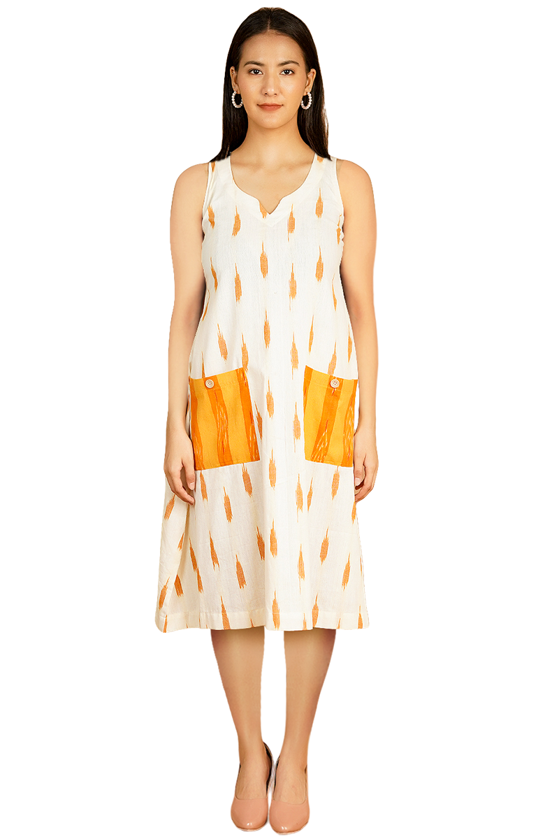 Ikat Midi White Dress