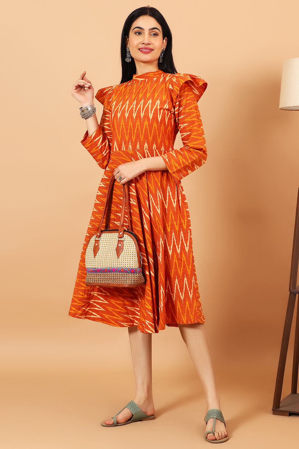 Ikat Orange Cotton Midi Dress