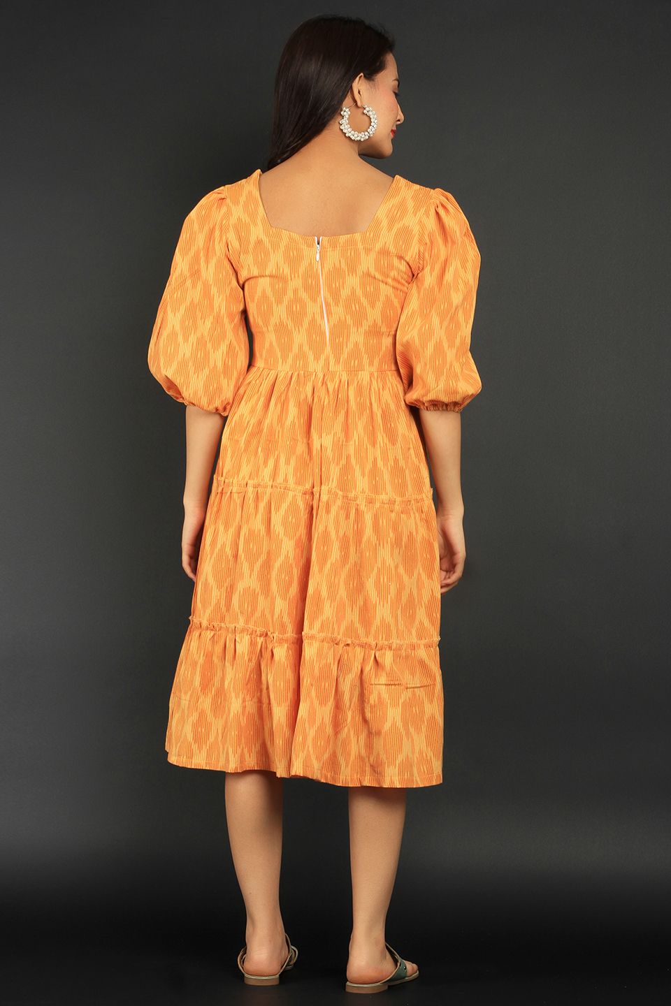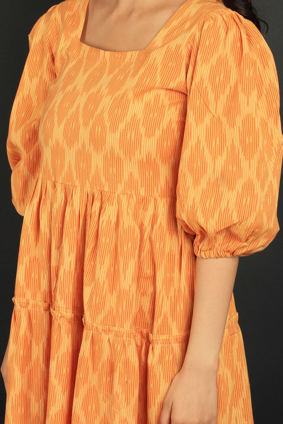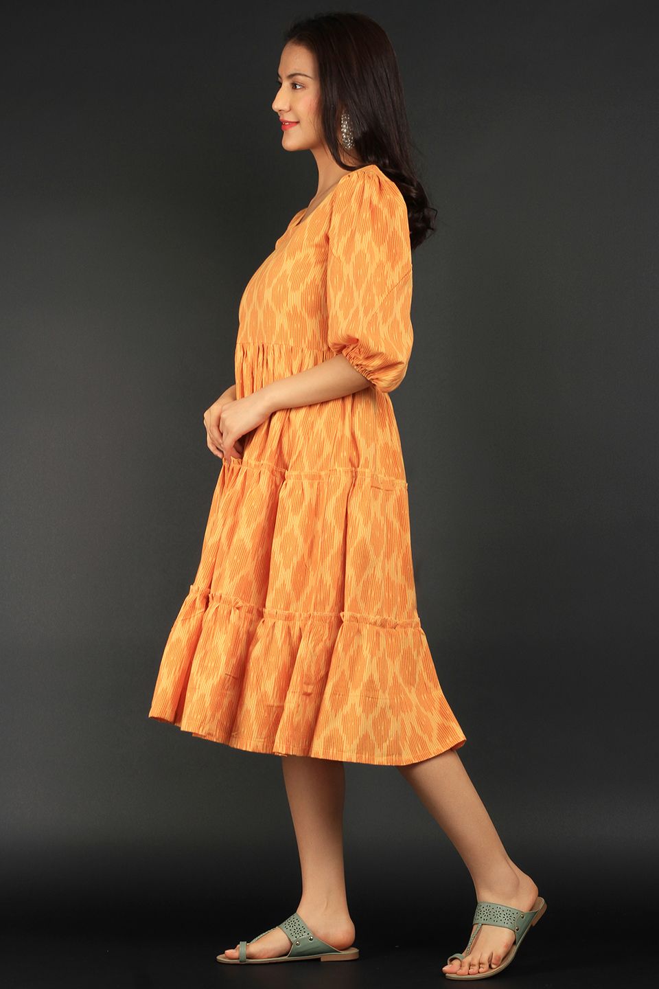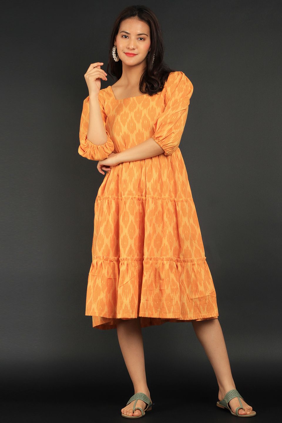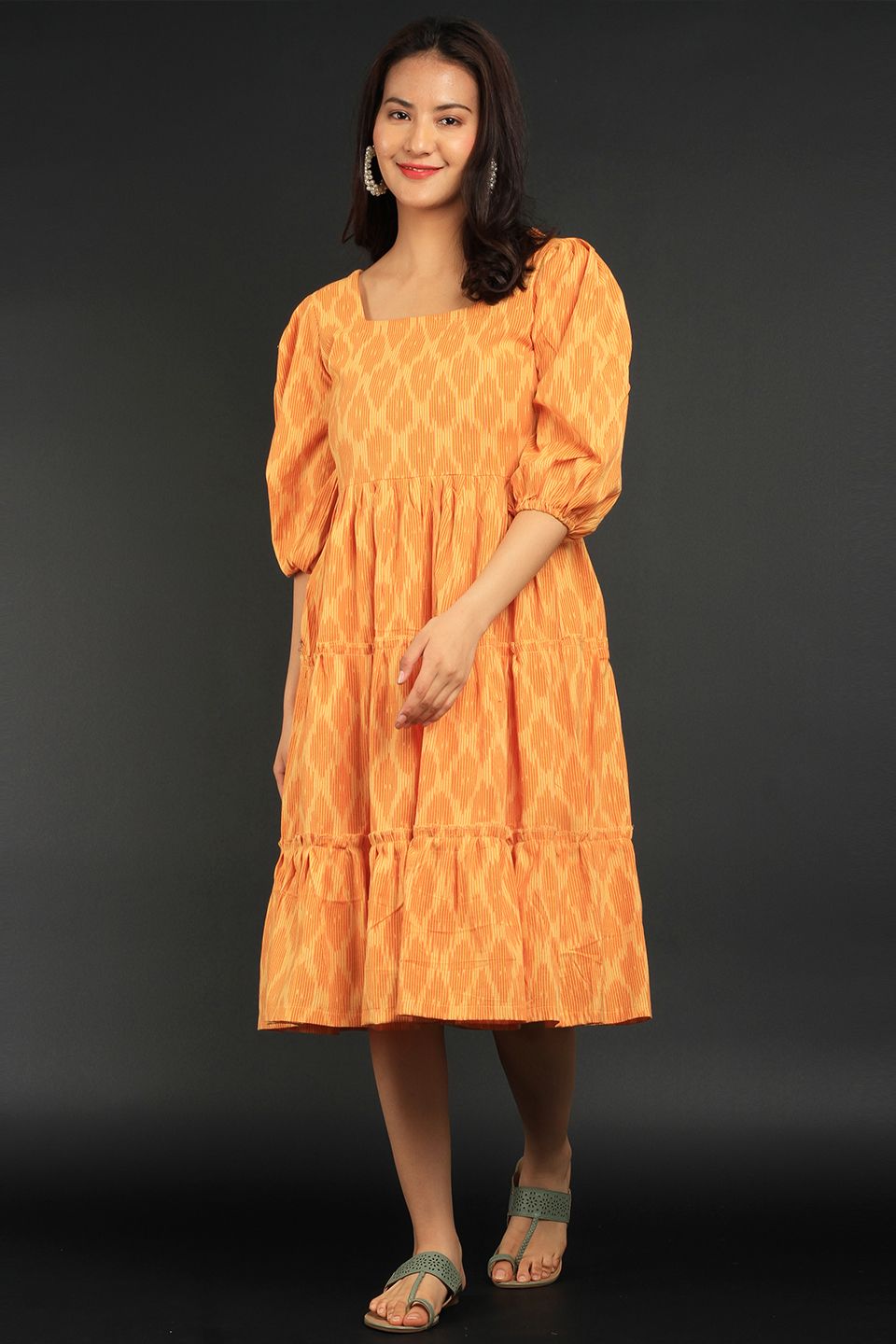 Ikat Yellow Cotton Midi Dress
