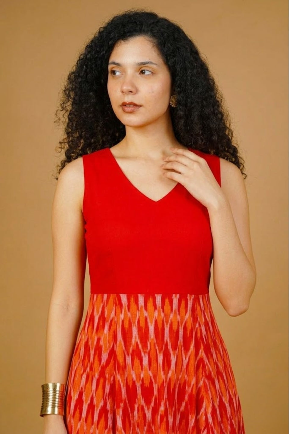 Red Ikat Midi Dress with Cotton Jersey Bodice